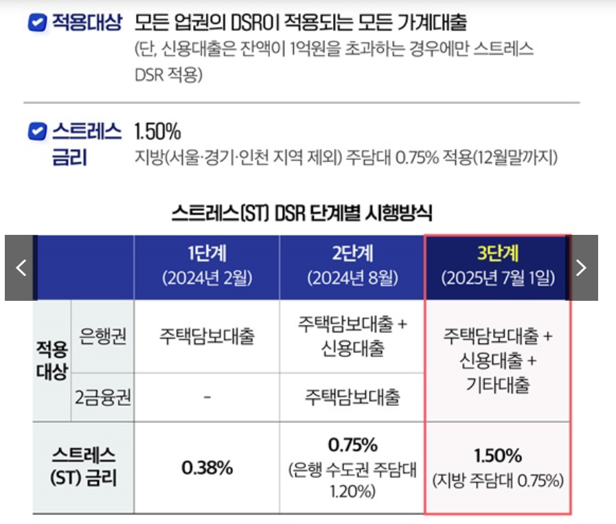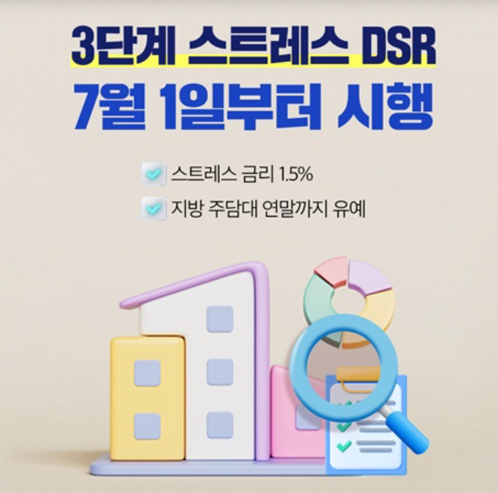2025년 7월부터 시행되는 DSR 3단계는 기존보다 훨씬 강화된 규제 방식으로, 모든 가계 자금 지원에 ‘스트레스 기준’이 반영되는 방식으로 바뀝니다.